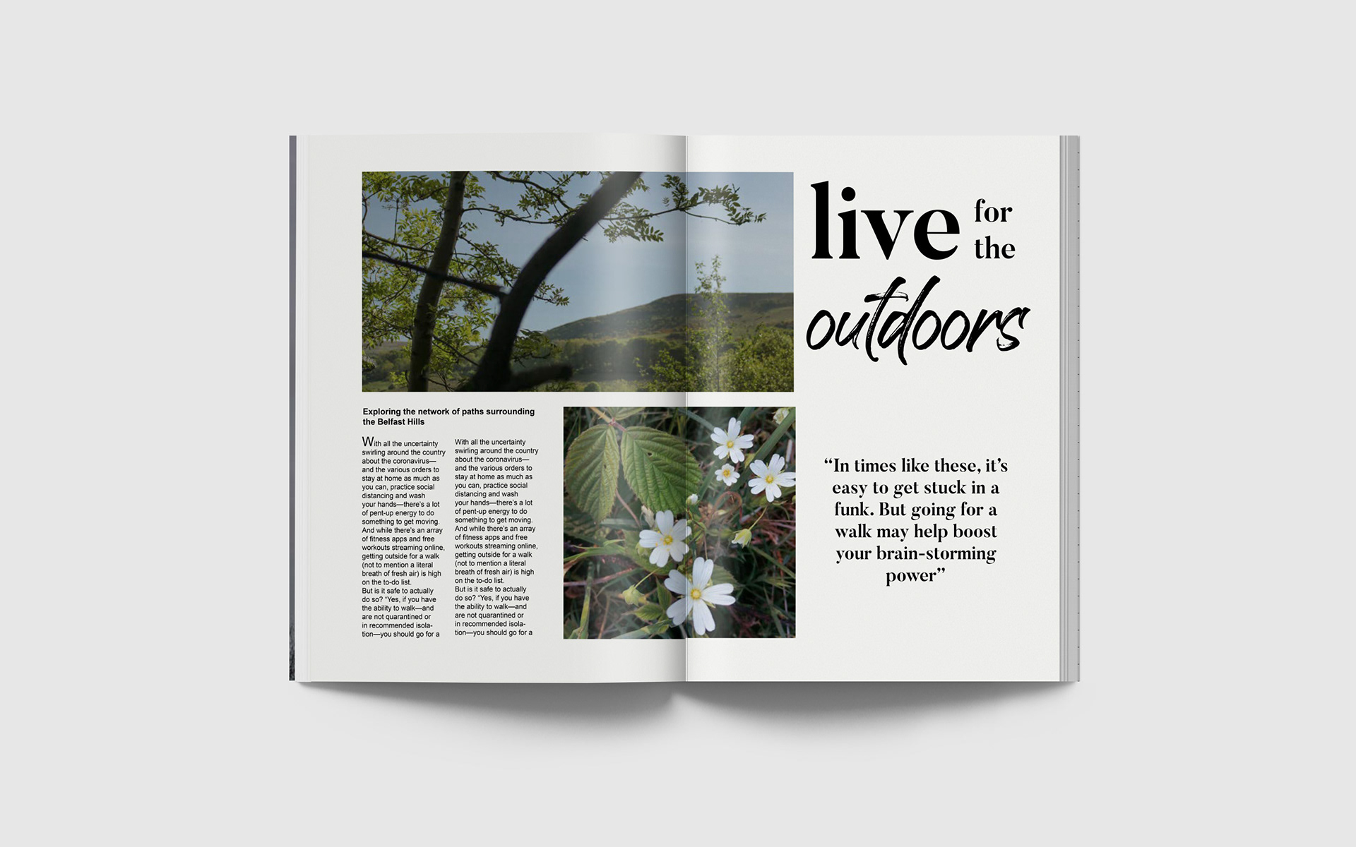 BRIEF: Create a 20-page editorial based on the indoors or outdoors.