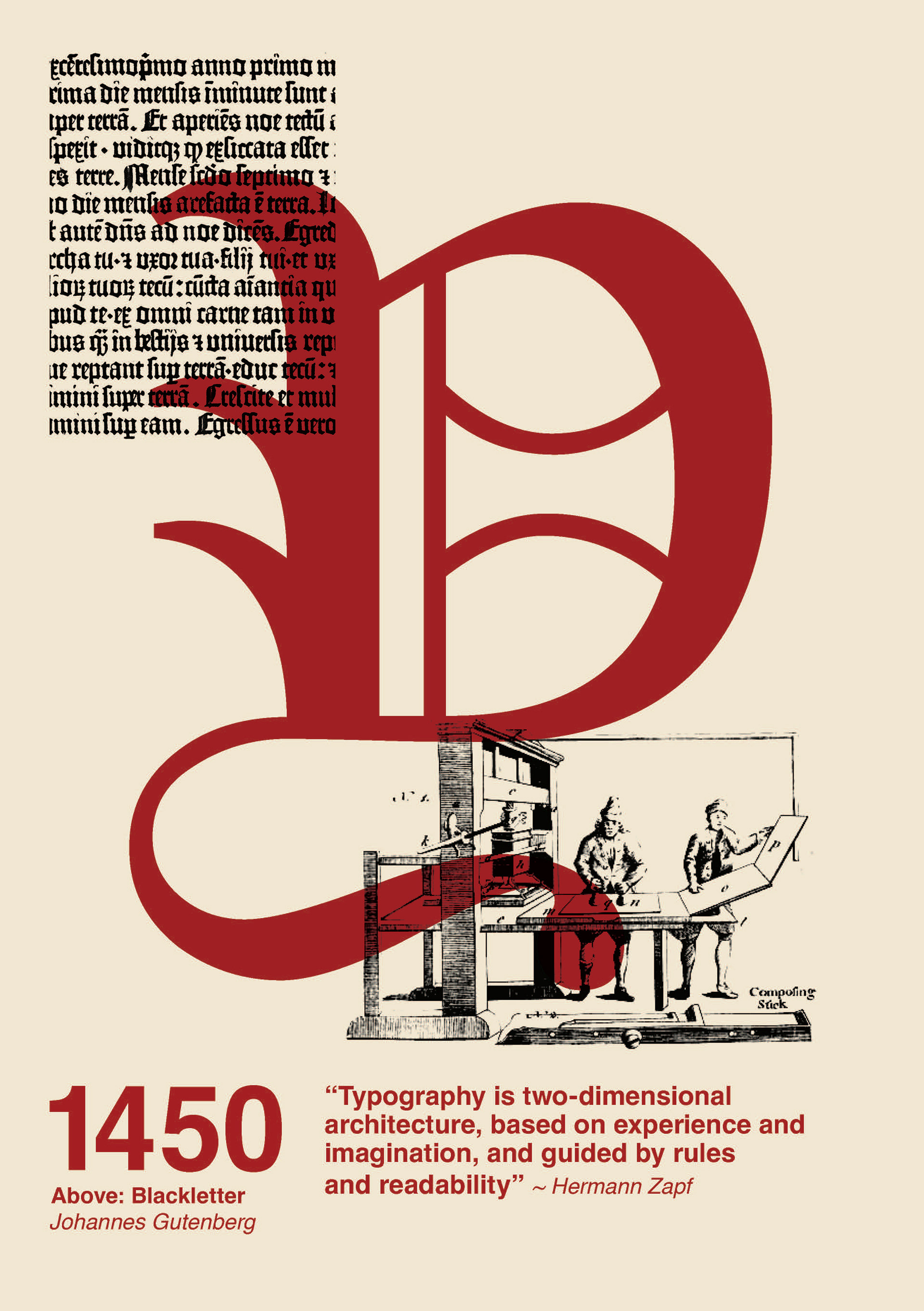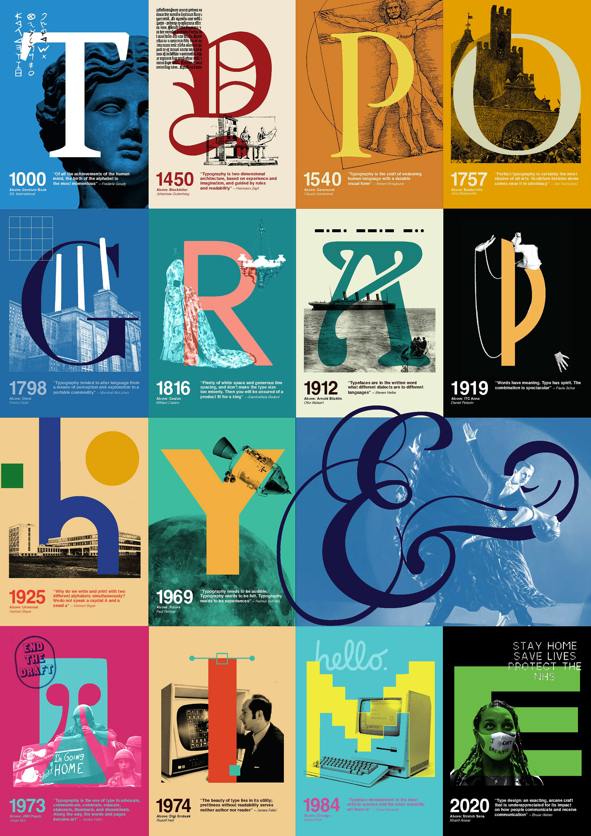 Typography & Time explores the evolution of typography through the ages. It showcases how typography, culture and history coincide through 14 individual designs. These designs can also be compiled into a poster format as shown below.