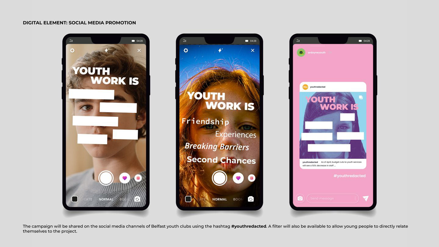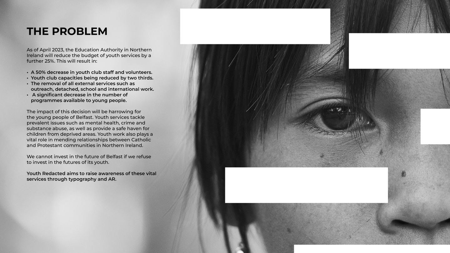 Youth Redacted aims to tackle the drastic cuts to youth services in Belfast through typography and augmented reality.
